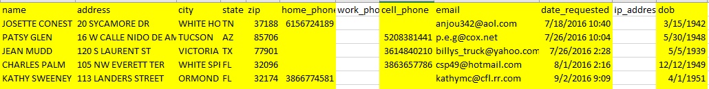 in CSV format for use in email, custom audience retargeting, direct mail, door knocking, or manual dialing not using regulated technologies to